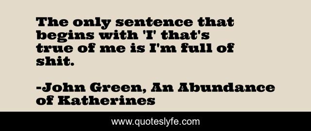 This page presents the quote "The only sentence that begins with 'I' that's true of me is I'm full of shit.". Author of this quote is John Green, An Abundance of Katherines. This quote is about teen, life, high-school, reality, society, realization,.