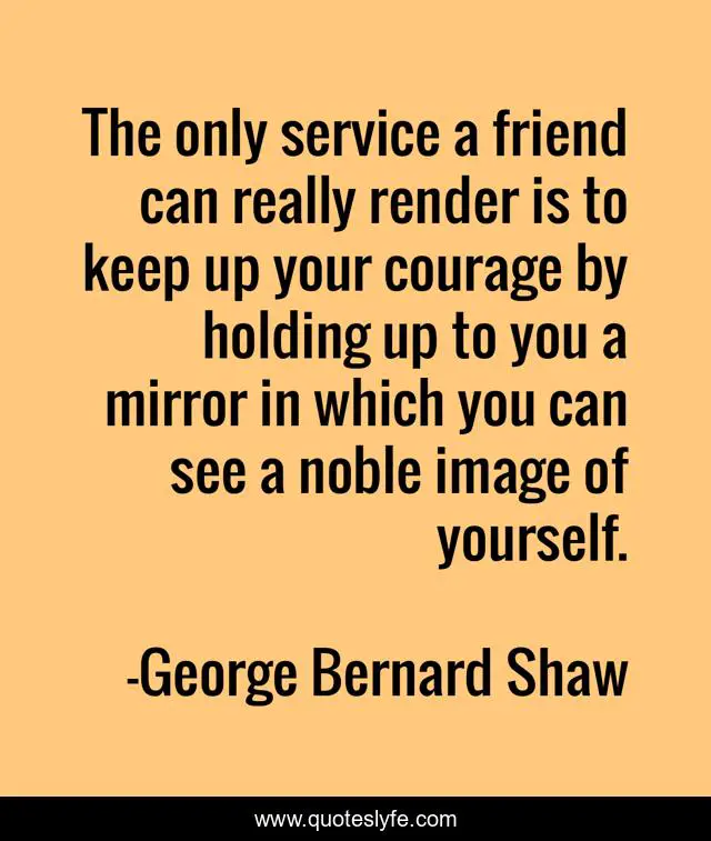The only service a friend can really render is to keep up your courage by holding up to you a mirror in which you can see a noble image of yourself.