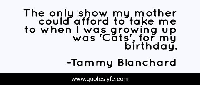 This page presents the quote "The only show my mother could afford to take me to when I was growing up was 'Cats', for my birthday.". Author of this quote is Tammy Blanchard. This quote is about me, cats, mother,.