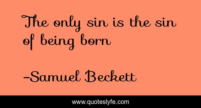This page presents the quote "The only sin is the sin of being born". Author of this quote is Samuel Beckett. This quote is about death, sin, birth,.