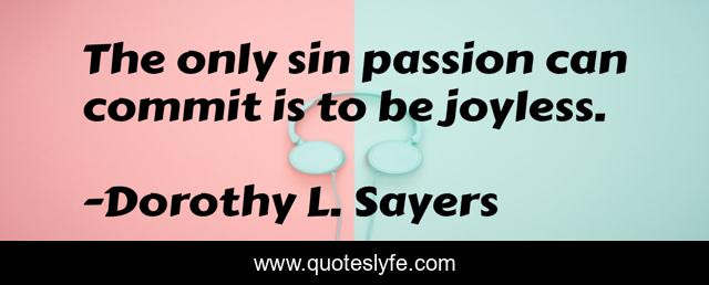 This page presents the quote "The only sin passion can commit is to be joyless.". Author of this quote is Dorothy L. Sayers. .