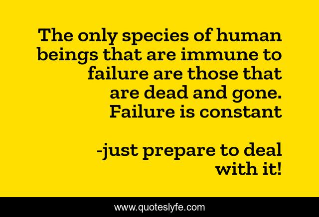 This page presents the quote "The only species of human beings that are immune to failure are those that are dead and gone. Failure is constant". Author of this quote is just prepare to deal with it!. This quote is about israelmore ayivor, the great hand book of quotes,.