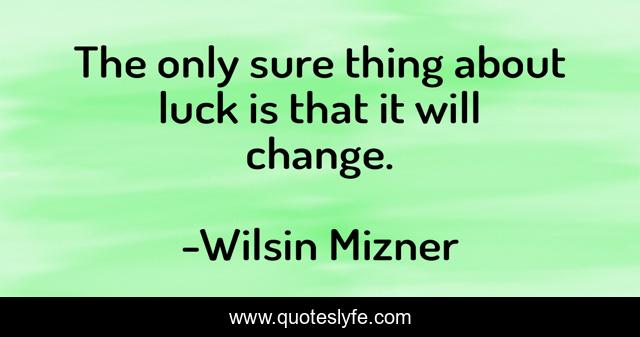 "Wilsin Mizner Quotes." Quoteslyfe.com, 2025. Fri. 05 Dec. 2025. <https://www.quoteslyfe.com/quote/The-only-sure-thing-about-luck-is-153901>.