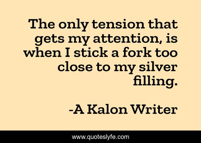 This page presents the quote "The only tension that gets my attention, is when I stick a fork too close to my silver filling.". Author of this quote is A Kalon Writer. This quote is about confidence, focus-on-your-dreams, positive, motivational, positive-thinking, poetictreats, optimistic, positive-thoughts,.