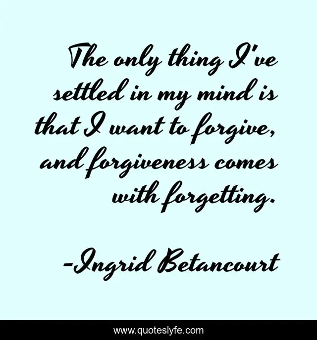 This page presents the quote "The only thing I've settled in my mind is that I want to forgive, and forgiveness comes with forgetting.". Author of this quote is Ingrid Betancourt. This quote is about mind, forgive,.