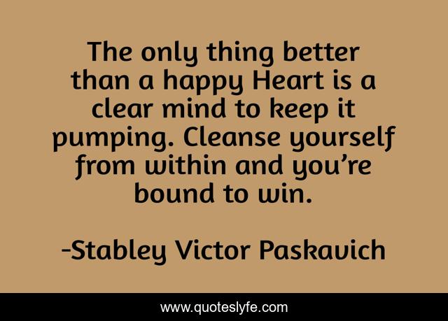 This page presents the quote "The only thing better than a happy Heart is a clear mind to keep it pumping. Cleanse yourself from within and you’re bound to win.". Author of this quote is Stabley Victor Paskavich. .