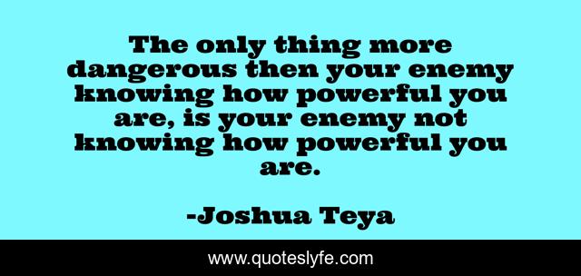 This page presents the quote "The only thing more dangerous then your enemy knowing how powerful you are, is your enemy not knowing how powerful you are.". Author of this quote is Joshua Teya. This quote is about war, power,.