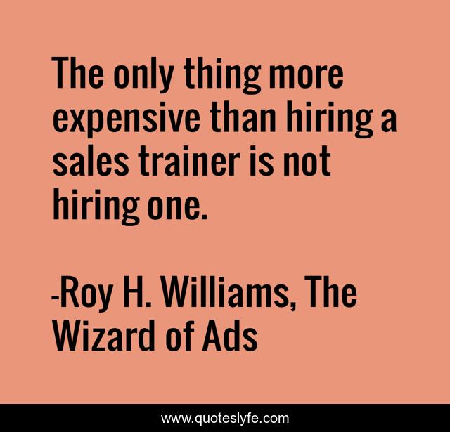 This page presents the quote "The only thing more expensive than hiring a sales trainer is not hiring one.". Author of this quote is Roy H. Williams, The Wizard of Ads. This quote is about sales, sales-training,.