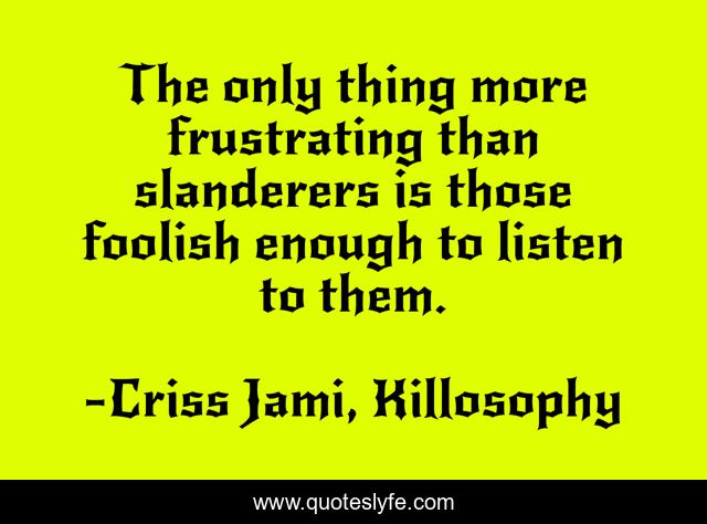 "Criss Jami, Killosophy Quotes." Quoteslyfe.com, 2025. Sun. 14 Dec. 2025. <https://www.quoteslyfe.com/quote/The-only-thing-more-frustrating-than-slanderers-167277>.