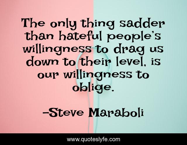 This page presents the quote "The only thing sadder than hateful people’s willingness to drag us down to their level, is our willingness to oblige.". Author of this quote is Steve Maraboli. This quote is about life, hate, success, level,.