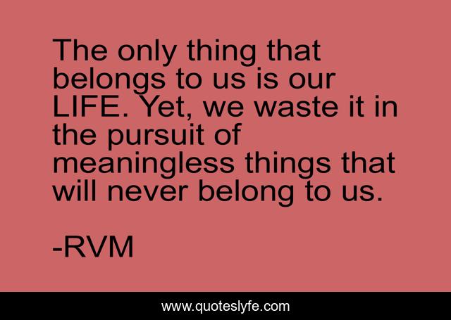 This page presents the quote "The only thing that belongs to us is our LIFE. Yet, we waste it in the pursuit of meaningless things that will never belong to us.". Author of this quote is RVM. This quote is about confidence, positive, motivational, optimistic, inspirational, enthusiasm,.