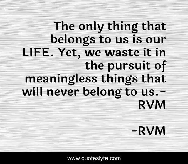 The only thing that belongs to us is our LIFE. Yet, we waste it in the pursuit of meaningless things that will never belong to us.- RVM