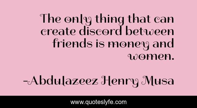 This page presents the quote "The only thing that can create discord between friends is money and women.". Author of this quote is Abdulazeez Henry Musa. .
