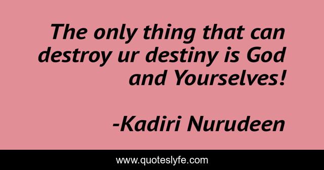 This page presents the quote "The only thing that can destroy ur destiny is God and Yourselves!". Author of this quote is Kadiri Nurudeen. This quote is about determination-and-god, destiny, greatness,.