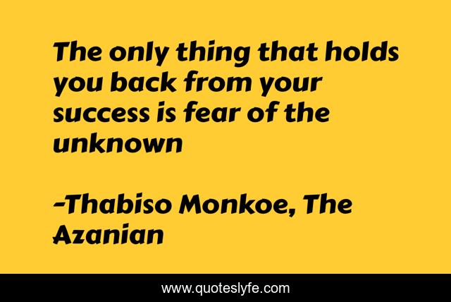 This page presents the quote "The only thing that holds you back from your success is fear of the unknown". Author of this quote is Thabiso Monkoe, The Azanian. .
