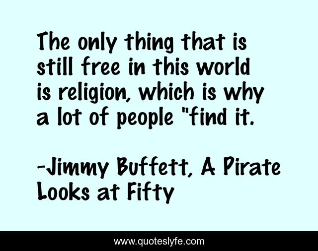 This page presents the quote "The only thing that is still free in this world is religion, which is why a lot of people "find it.". Author of this quote is Jimmy Buffett, A Pirate Looks at Fifty. This quote is about religion, buffett, free,.