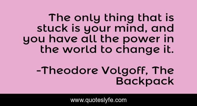 This page presents the quote "The only thing that is stuck is your mind, and you have all the power in the world to change it.". Author of this quote is Theodore Volgoff, The Backpack. This quote is about mind, change, power,.