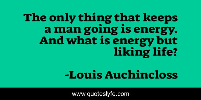 This page presents the quote "The only thing that keeps a man going is energy. And what is energy but liking life?". Author of this quote is Louis Auchincloss. .