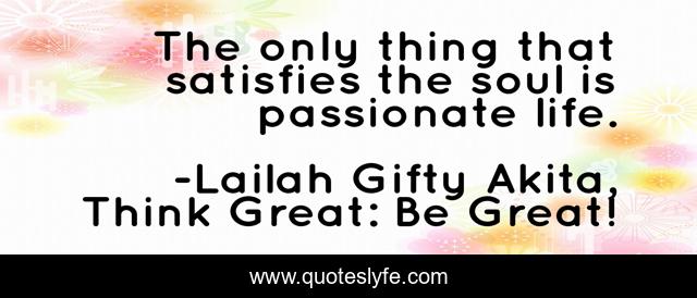 "Lailah Gifty Akita, Think Great: Be Great! Quotes." Quoteslyfe.com, 2025. Fri. 05 Dec. 2025. <https://www.quoteslyfe.com/quote/The-only-thing-that-satisfies-the-soul-92724>.