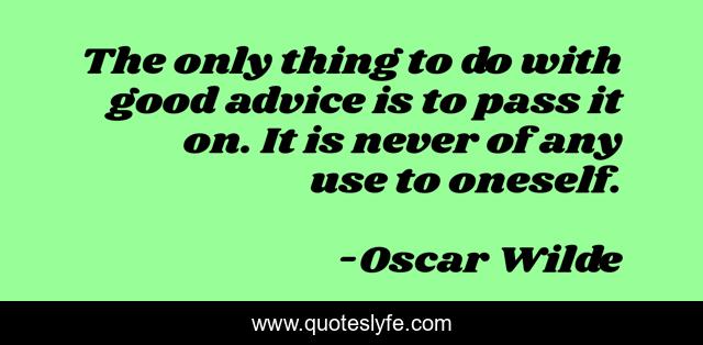 This page presents the quote "The only thing to do with good advice is to pass it on. It is never of any use to oneself.". Author of this quote is Oscar Wilde. .