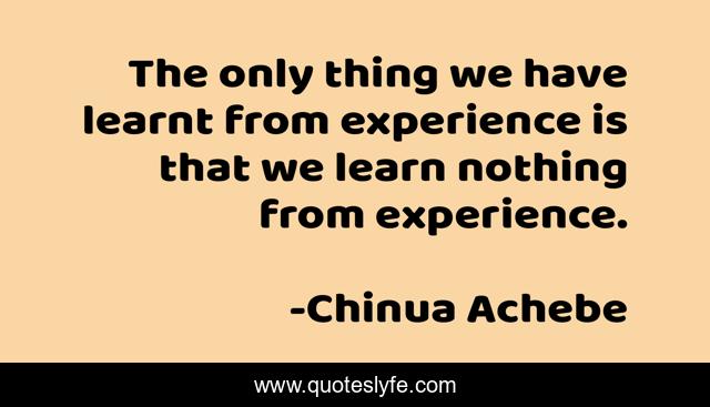 This page presents the quote "The only thing we have learnt from experience is that we learn nothing from experience.". Author of this quote is Chinua Achebe. This quote is about nothing, only, learn,.