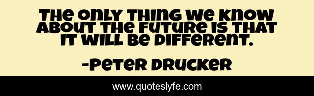 This page presents the quote "The only thing we know about the future is that it will be different.". Author of this quote is Peter Drucker. .