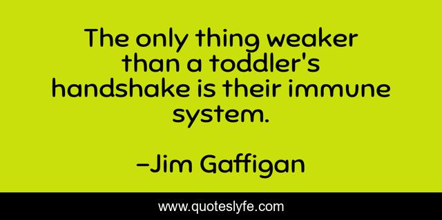This page presents the quote "The only thing weaker than a toddler's handshake is their immune system.". Author of this quote is Jim Gaffigan. This quote is about humor, children,.