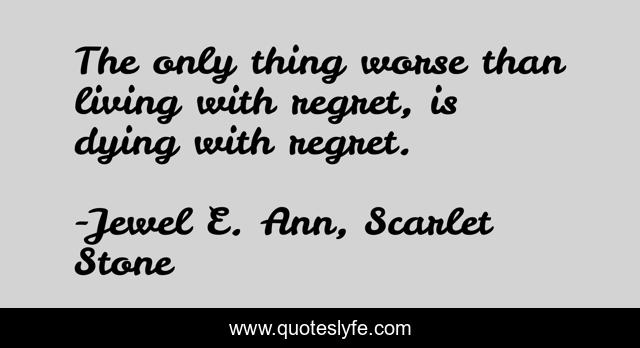 This page presents the quote "The only thing worse than living with regret, is dying with regret.". Author of this quote is Jewel E. Ann, Scarlet Stone. This quote is about living, regret, dying,.