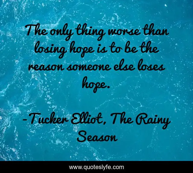 "Tucker Elliot, The Rainy Season Quotes." Quoteslyfe.com, 2025. Mon. 08 Dec. 2025. <https://www.quoteslyfe.com/quote/The-only-thing-worse-than-losing-hope-208649>.