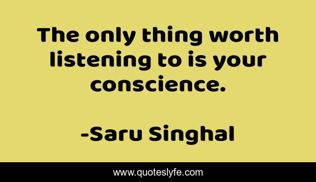This page presents the quote "The only thing worth listening to is your conscience.". Author of this quote is Saru Singhal. This quote is about conscience, quotes-about-life,.
