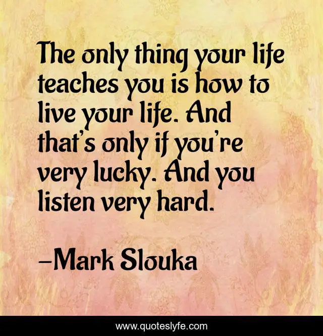 This page presents the quote "The only thing your life teaches you is how to live your life. And that’s only if you’re very lucky. And you listen very hard.". Author of this quote is Mark Slouka. This quote is about grief, lessons, life, dying, living,.
