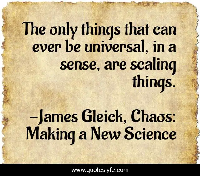 This page presents the quote "The only things that can ever be universal, in a sense, are scaling things.". Author of this quote is James Gleick, Chaos: Making a New Science. This quote is about geometry, chaos,.