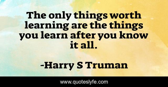 This page presents the quote "The only things worth learning are the things you learn after you know it all.". Author of this quote is Harry S Truman. .