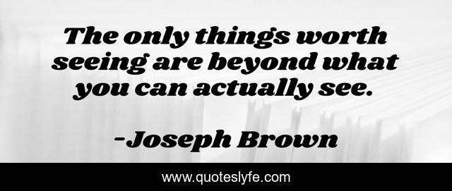 This page presents the quote "The only things worth seeing are beyond what you can actually see.". Author of this quote is Joseph Brown. This quote is about fantasy, fiction, inspirational, enthusiasm,.