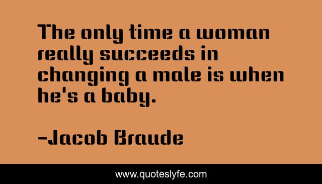 This page presents the quote "The only time a woman really succeeds in changing a male is when he's a baby.". Author of this quote is Jacob Braude. This quote is about men, women,.