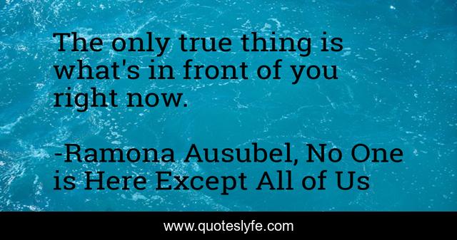 This page presents the quote "The only true thing is what's in front of you right now.". Author of this quote is Ramona Ausubel, No One is Here Except All of Us. This quote is about present-moment, truth,.