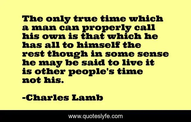 This page presents the quote "The only true time which a man can properly call his own is that which he has all to himself the rest though in some sense he may be said to live it is other people's time not his.". Author of this quote is Charles Lamb. .