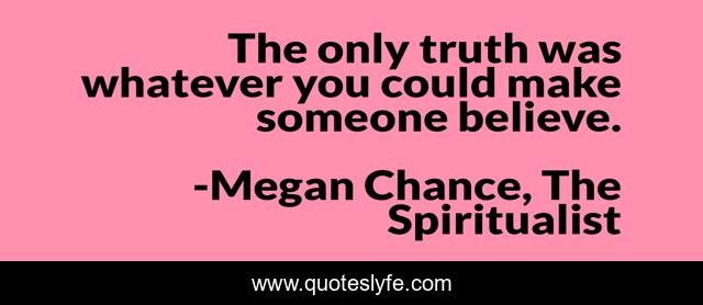 This page presents the quote "The only truth was whatever you could make someone believe.". Author of this quote is Megan Chance, The Spiritualist. This quote is about spiritualism, faith, belief, truth,.