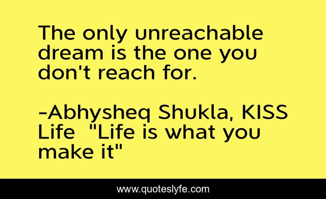 "Abhysheq Shukla, KISS Life "Life is what you make it" Quotes." Quoteslyfe.com, 2025. Sun. 07 Dec. 2025. <https://www.quoteslyfe.com/quote/The-only-unreachable-dream-is-the-one-81681>.