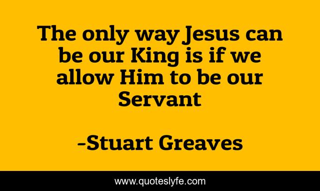 This page presents the quote "The only way Jesus can be our King is if we allow Him to be our Servant". Author of this quote is Stuart Greaves. This quote is about servant, king, jesus, god,.