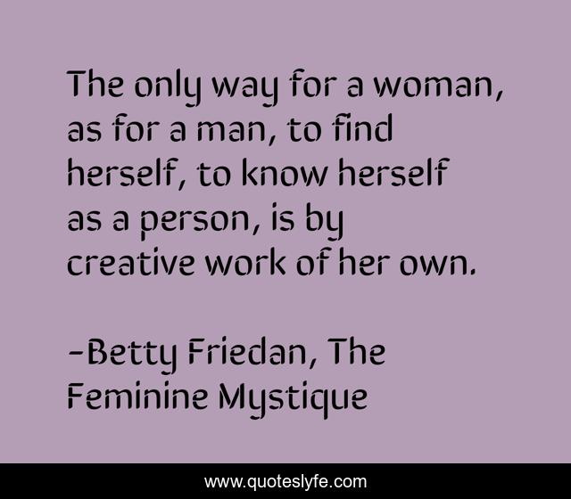 "Betty Friedan, The Feminine Mystique Quotes." Quoteslyfe.com, 2025. Sun. 07 Dec. 2025. <https://www.quoteslyfe.com/quote/The-only-way-for-a-woman-as-101464>.