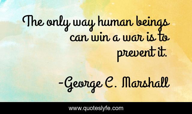 This page presents the quote "The only way human beings can win a war is to prevent it.". Author of this quote is George C. Marshall. This quote is about win, way, human,.