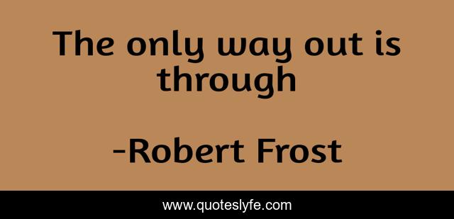 This page presents the quote "The only way out is through". Author of this quote is Robert Frost. This quote is about grief, climbing-out-from-under, heartbreak, healing,.