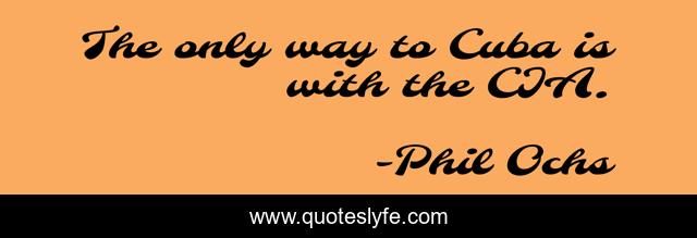 This page presents the quote "The only way to Cuba is with the CIA.". Author of this quote is Phil Ochs. This quote is about united-states-embargo-cuba, foreign-policy, american-foreign-policy, cuba, united-states, politics, central-intelligence-agency,.