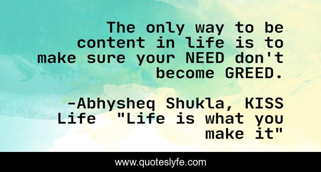 "Abhysheq Shukla, KISS Life "Life is what you make it" Quotes." Quoteslyfe.com, 2025. Fri. 05 Dec. 2025. <https://www.quoteslyfe.com/quote/The-only-way-to-be-content-in-81647>.