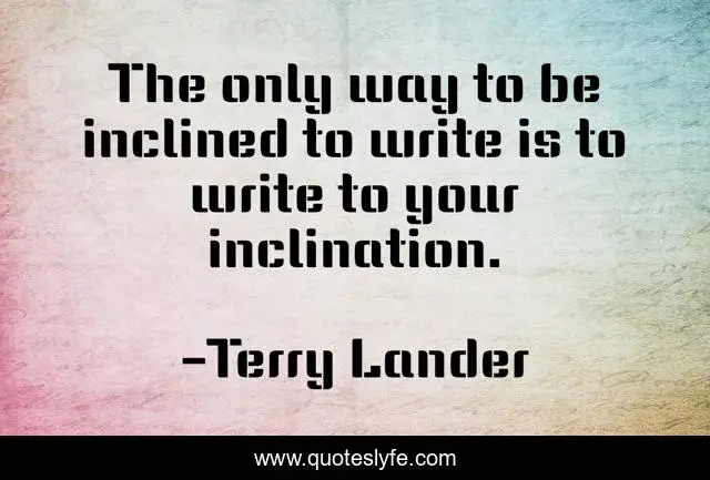 This page presents the quote "The only way to be inclined to write is to write to your inclination.". Author of this quote is Terry Lander. This quote is about inclination, writing, writers-on-writing, writers, inspiration,.