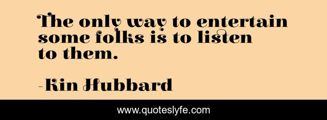 This page presents the quote "The only way to entertain some folks is to listen to them.". Author of this quote is Kin Hubbard. This quote is about humor, listening,.