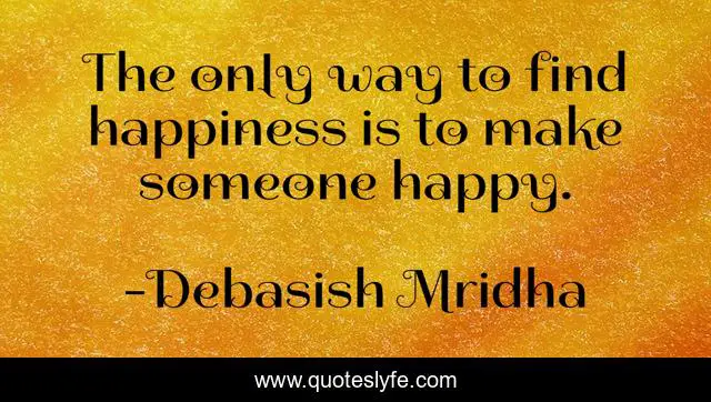 This page presents the quote "The only way to find happiness is to make someone happy.". Author of this quote is Debasish Mridha. This quote is about happy, life, love, knowledge, inspirational, intelligence, philosophy, wisdom, affection,.