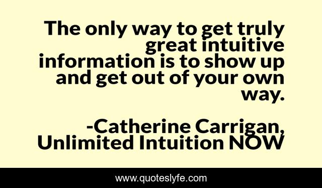 This page presents the quote "The only way to get truly great intuitive information is to show up and get out of your own way.". Author of this quote is Catherine Carrigan, Unlimited Intuition NOW. .