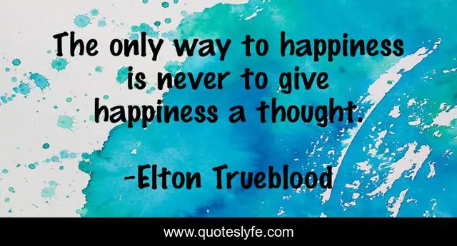 This page presents the quote "The only way to happiness is never to give happiness a thought.". Author of this quote is Elton Trueblood. .